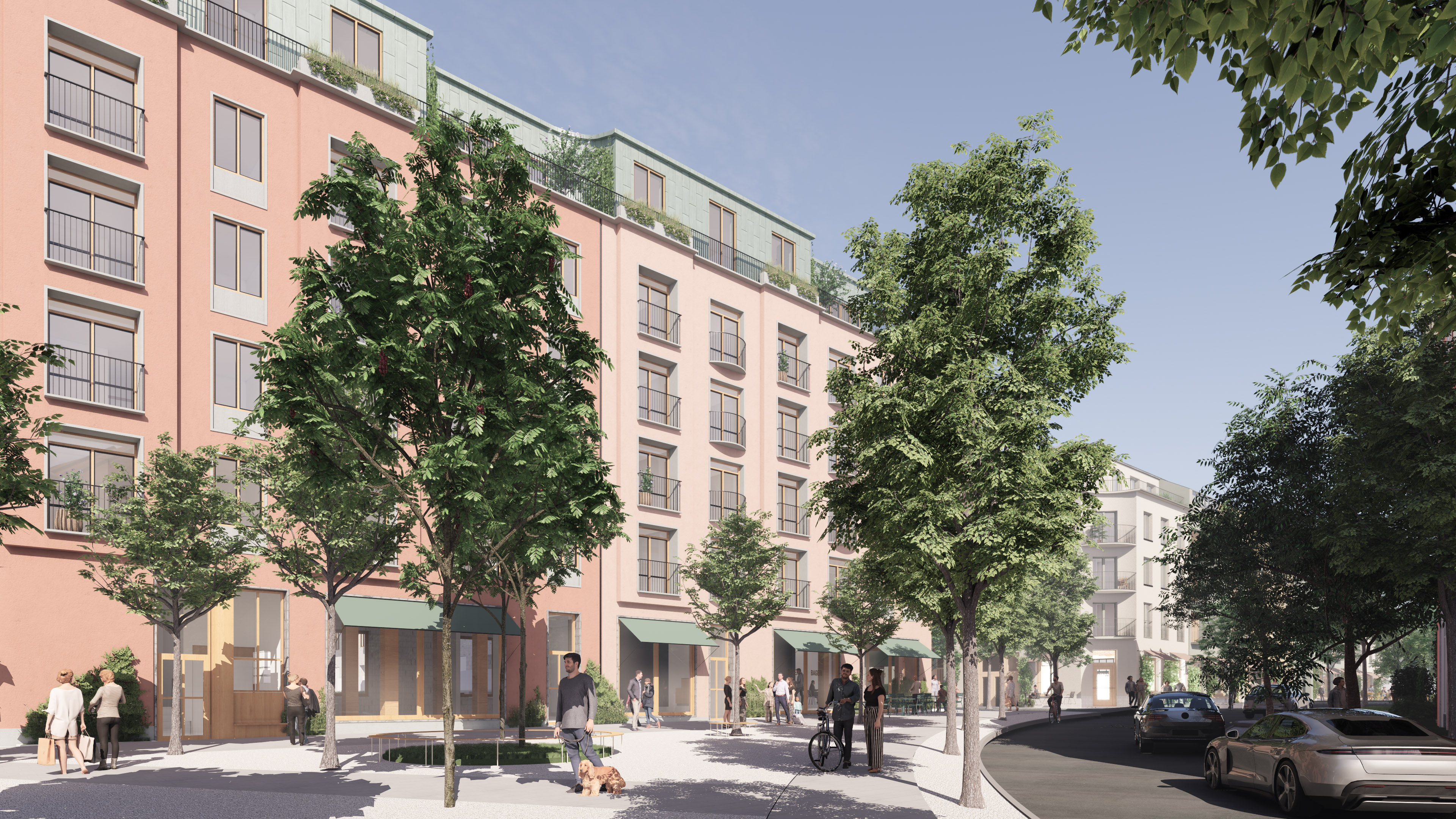 Great focus has been placed on ensuring that the forthcoming new development blends into the existing cityscape. To enhance the feeling of a vibrant neighborhood, squares and park will be created, which will also create space for biodiversity.